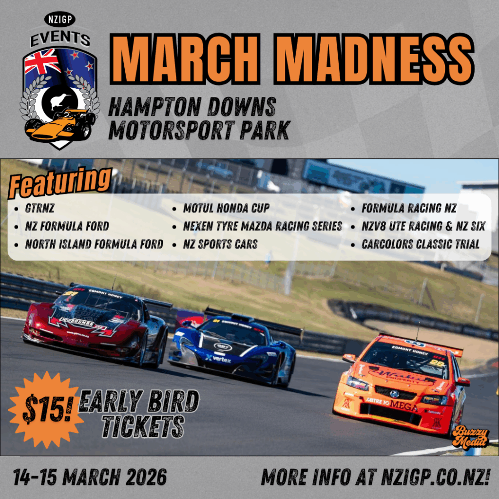 It’s not called March Madness for nothing… join us at Hampton Downs Motorsport Park for a weekend stacked with racing action. From two grids of GTRNZ to the NZ Formula Ford Championship, the line-up is loaded with some of the country’s top categories.