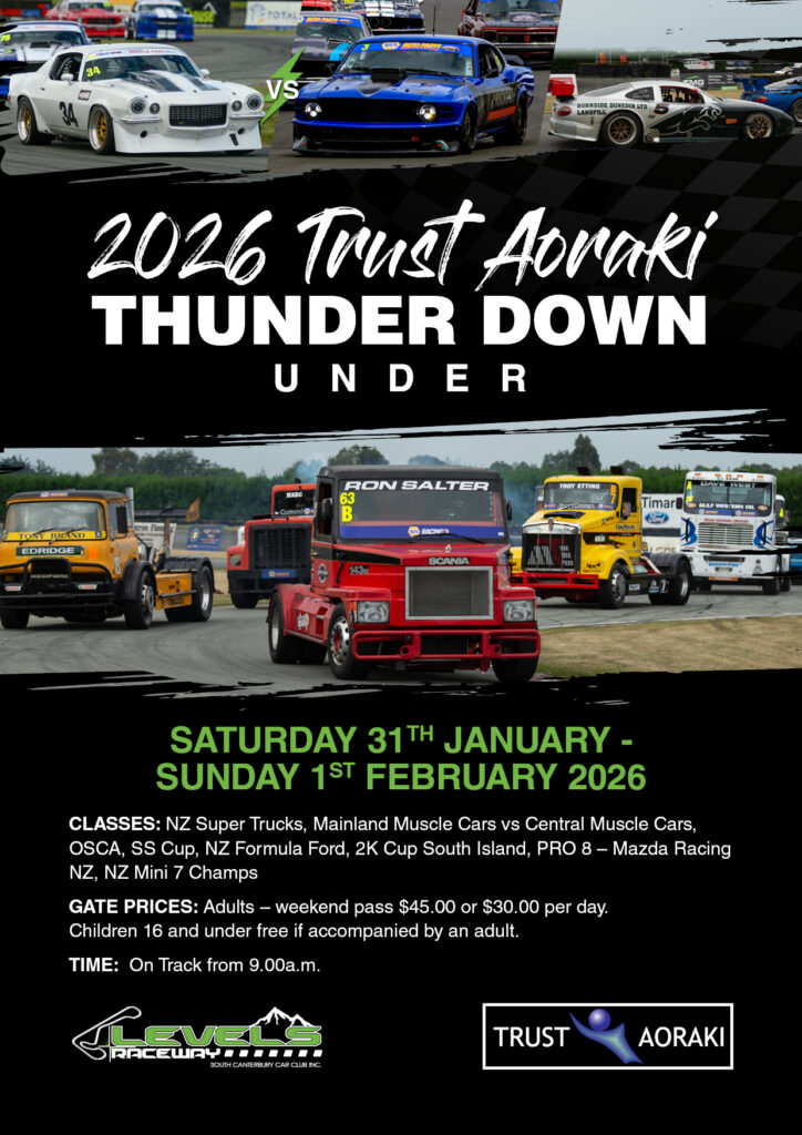 Get ready for an epic motorsport weekend here at Levels Raceway with the Trust Aoraki Thunder Down Under event on Saturday 31st January & Sunday 1st February 2026!